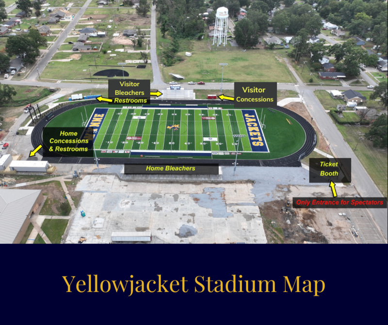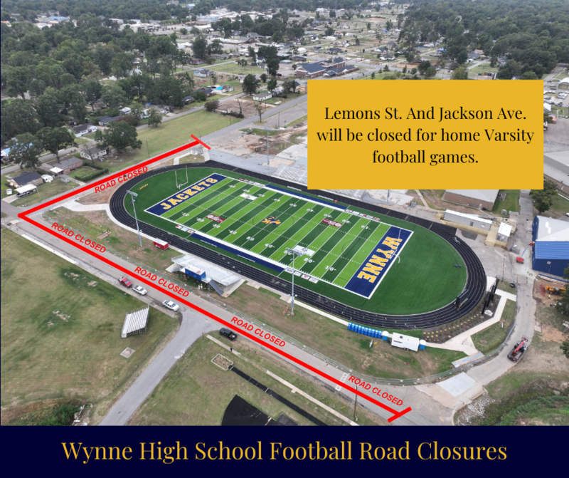 For Yellowjacket home games, Lemons St. and Jackson Ave. will be closed to traffic from 4 PM until all visiting buses depart. Access to these streets will be reserved for school and emergency personnel only.